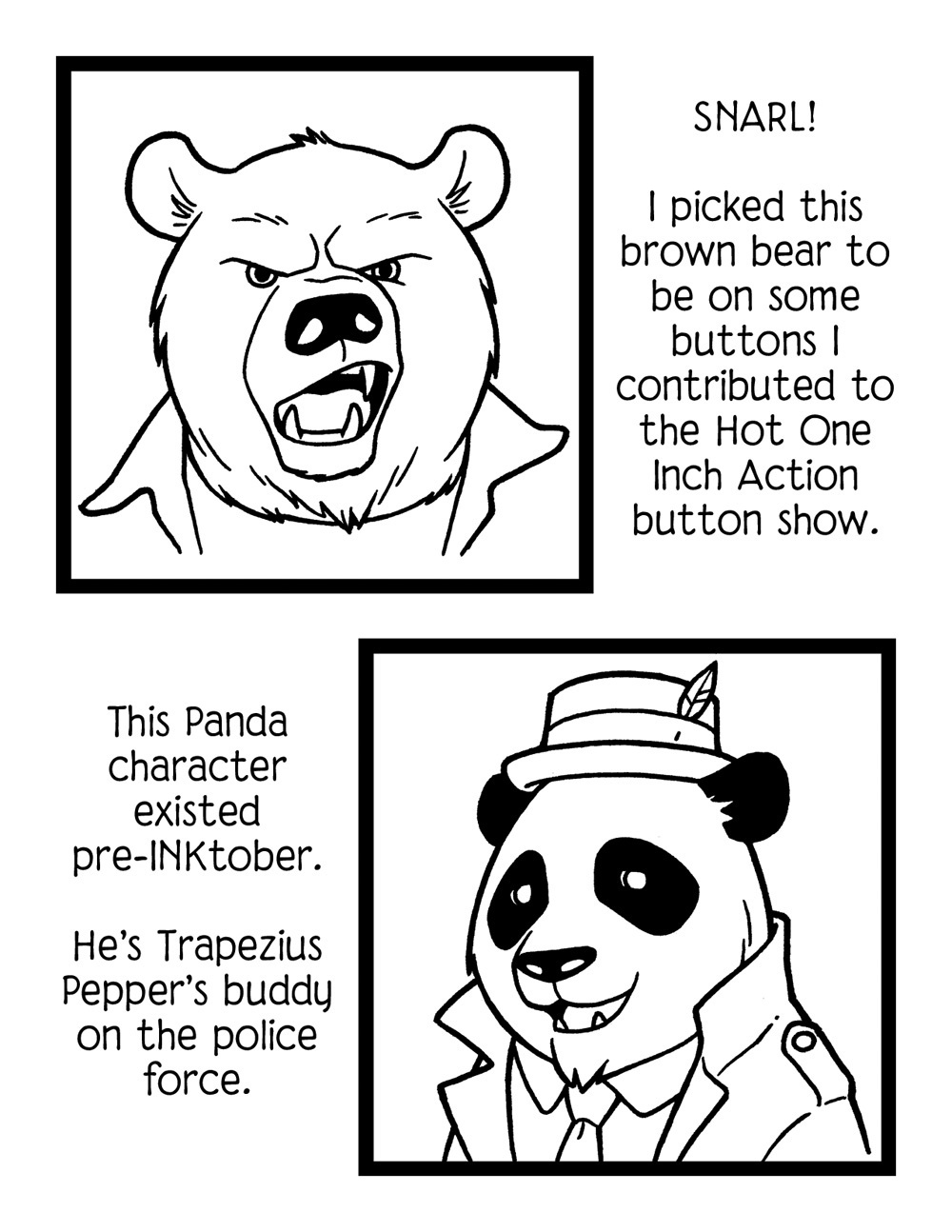“RACCOONS AND HUMANS AND BEARS, OH MY!” is a collection of my INKtober sketches from 2012 and 2013, including some notes about the drawings, the characters and what inspired them.