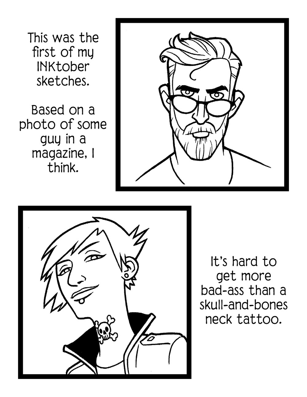 The gist of the INKtober Challenge is that artists do an inked drawing each day in October and tag it on social media with “#inktober”. I used it as an opportunity to work through some character design ideas for a comic I've been itching to start.